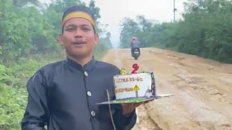 Sebagai bentuk kritik, Rijal bahkan membuat kue ulang tahun ke-62 dengan desain jalan aspal yang terkikis dan rusak, sebagai simbol kondisi infrastruktur di daerahnya.